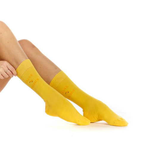Dorénavant plus besoin de marcher sur des œufs ! Avancez avec confiance grâce à nos chaussettes jaune poussin.