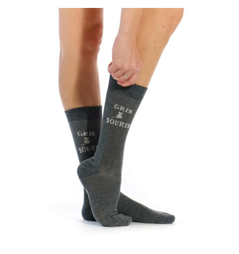 Mi-chaussette mixte, coton majoritaire, motif "gris souris".