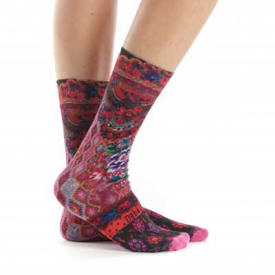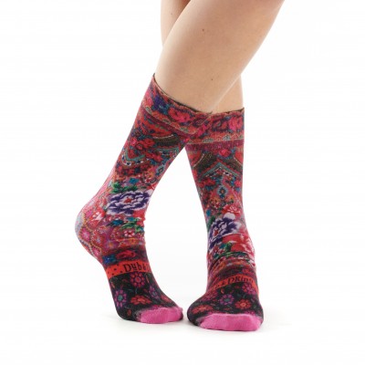 Mi-chaussette femme, bambou majoritaire, imprimé sans raccord sur toute la chaussette.