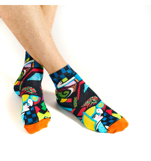 Socquettes ultracourtes, multicolore, bambou, Noir de Ruban Rouge, motif : inspiré de l’œuvre d’Henry Lyman Sayen